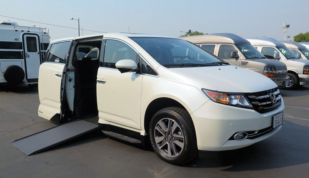 Honda Odyssey wheelchair minivans often come equipped with a ramp that moves and stores in the interior floor. Push a button, and the door automatically powers open.